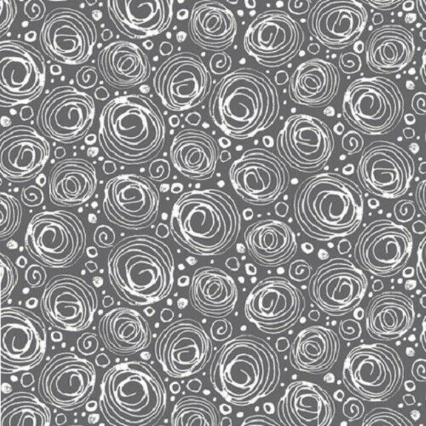 Quilting Treasures Alyssa White Geo Circle on Grey Fabric.