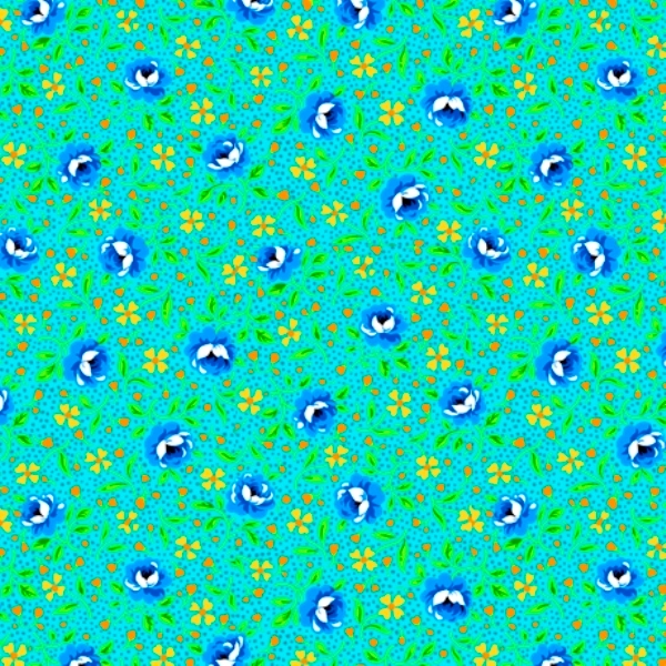Quilting Treasures Bliss Multi Floral & Dot on Turquoise Fabric.