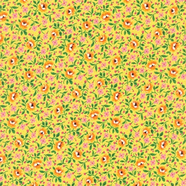 Quilting Treasures Bliss Multi Floral & Dot on Yellow Fabric.
