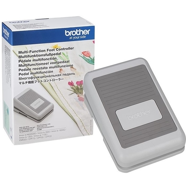 This foot pedal can be set to control single stitch sewing, reverse stitch sewing, and moving the needle up and down. Allows you to operate your machine while still holding on to your project with two hands.