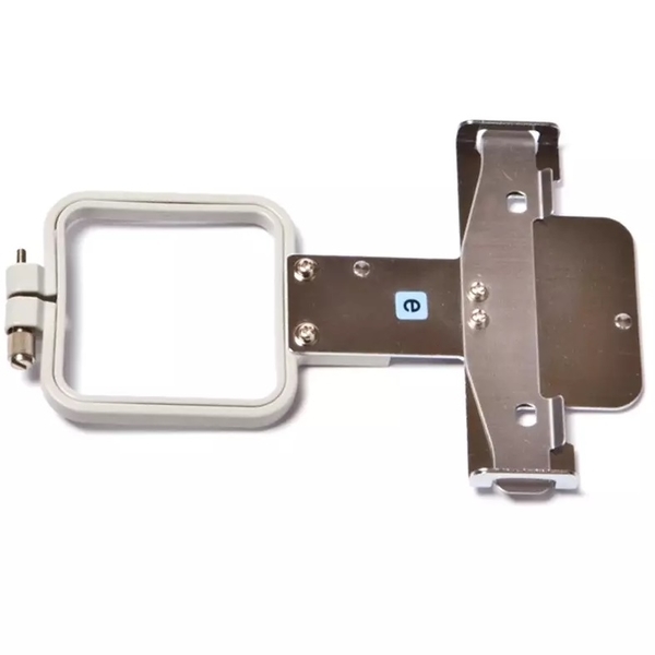 Arm 'e' required to mount hoop onto machine.