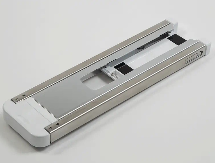 Foldable free arm makes storage easy.