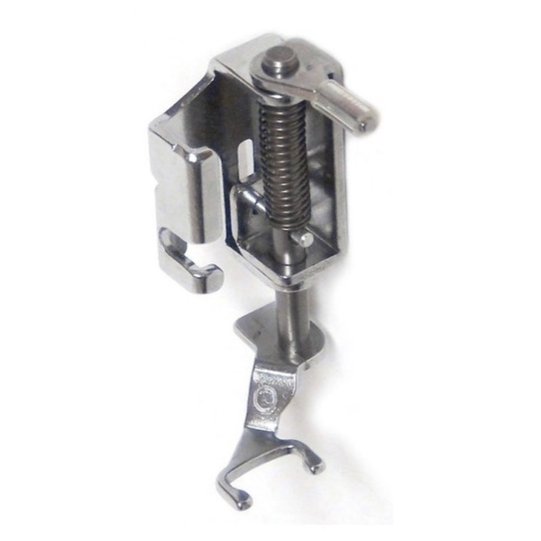 The spring action keeps the fabric from lifting with the needle as the stitch is being formed which helps eliminate thread breakage with specialty or heavier threads. Be sure to use the appropriate needle for the thread you are using.