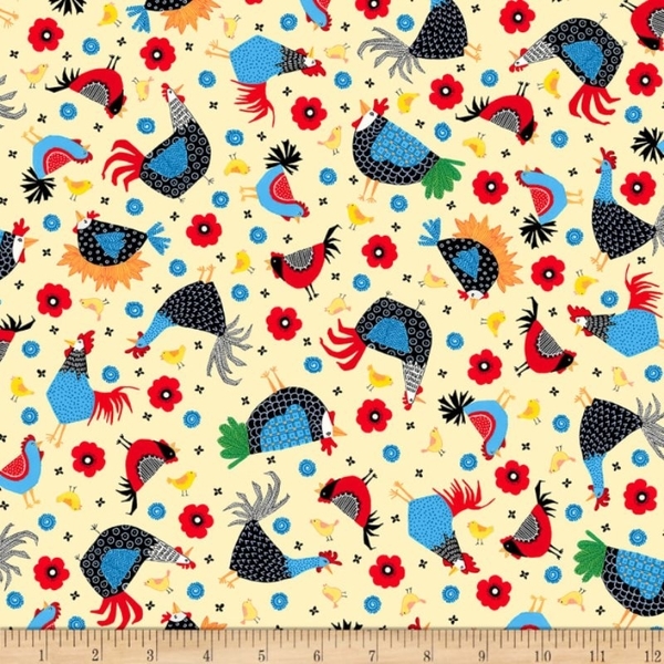 Quilting Treasures Count Your Chickens – Tossed Chickens on Butter Fabric.