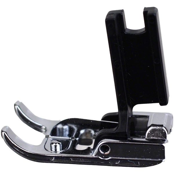 The Fringe Foot, sometimes referred to as the “Tailor-Tacking Foot”, has a raised bar at the front which causes the thread to stand away from the fabric. Using a simple zig-zag stitch you can create beautiful surface texture, custom trims, fringed flowers and appliques or use it to create traditional tailor tacks.