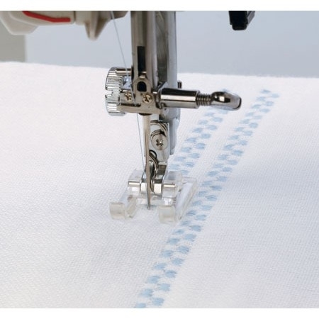 The custom crafted foot solves all those problems allowing a much better view of the sewing progress