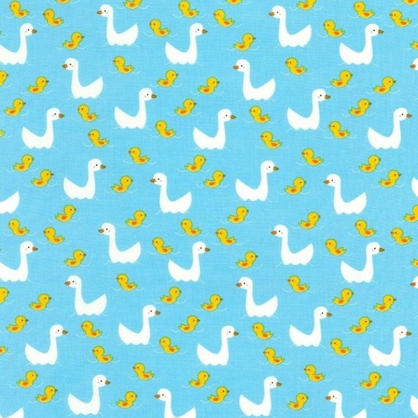 Timeless Treasures Farm Ducks & Ducklings on Water Blue Fabric.