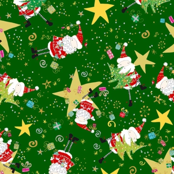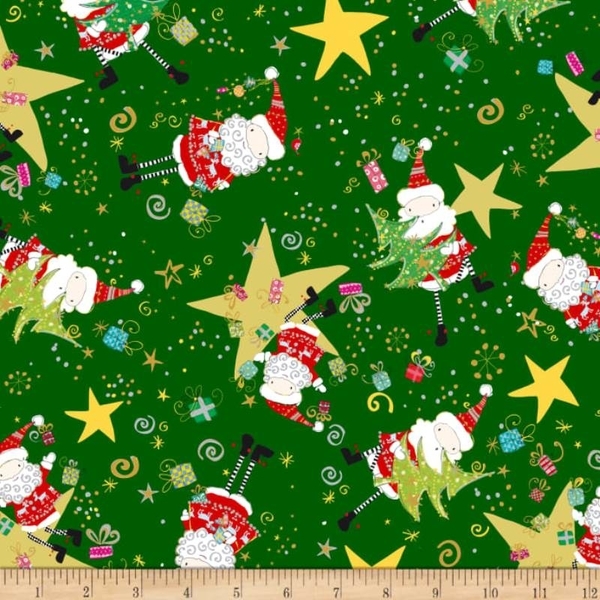 Quilting Treasures Happy Christmas Santa & Stars on Forest Fabric.