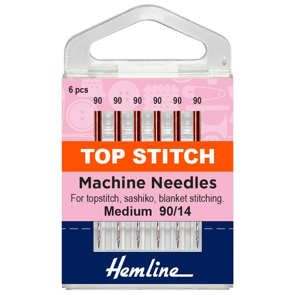 Hemline Sewing Machine Needles: Top-Stitch: 90/14: 6 Pieces