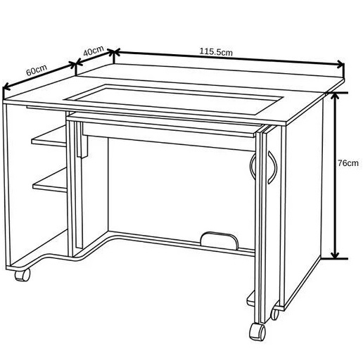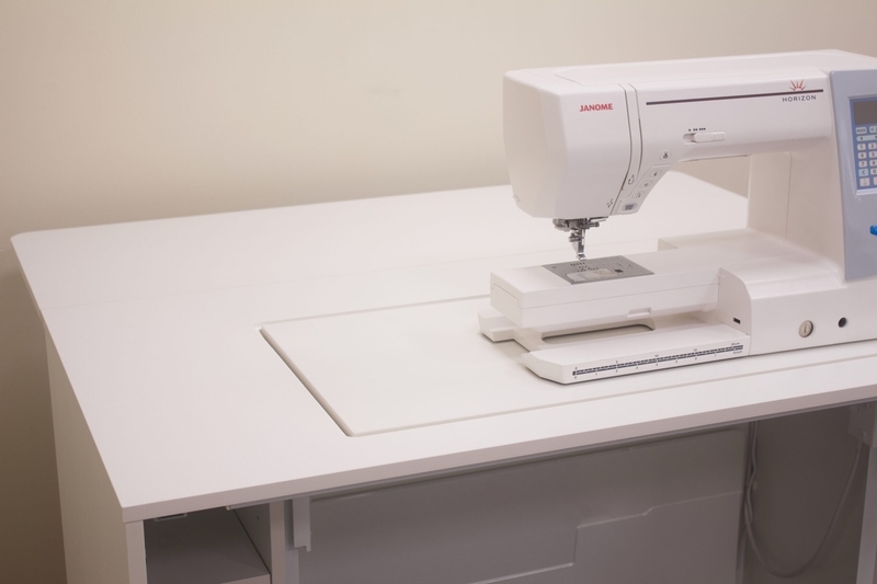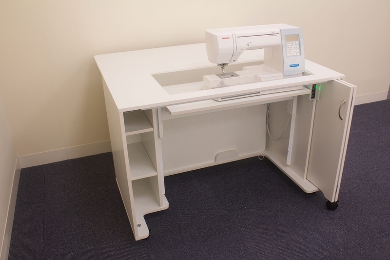 Bear in mind that if you own a very large embroidery machine, such as the Brother Luminaire or the Janome Continental M17, you will need an additional piece from the modular range to position on the left-hand side of the 860 cabinet to support the embroidery unit during use.