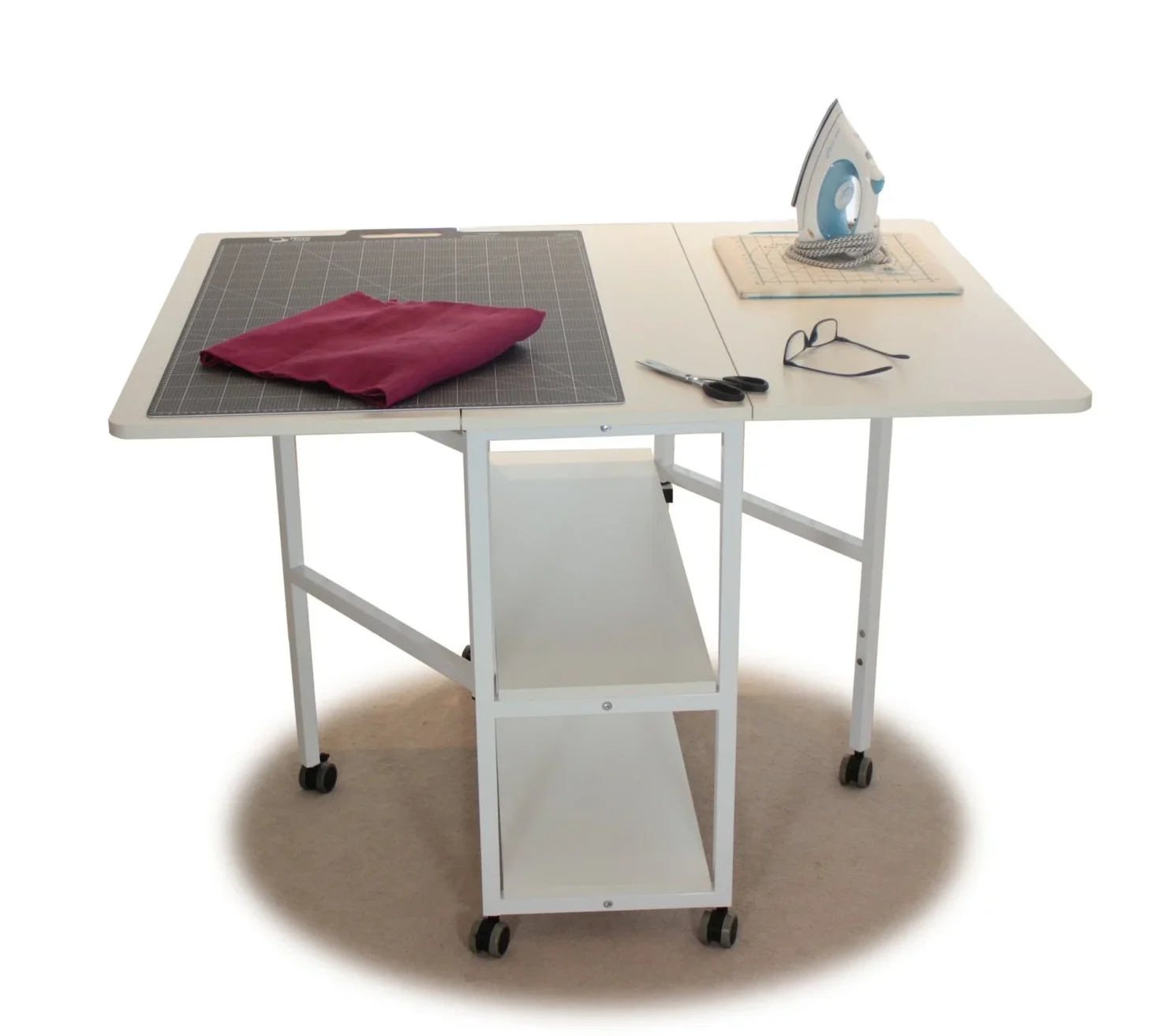 Includes two integrated shelves, allowing you to organise your supplies and keep them close while working