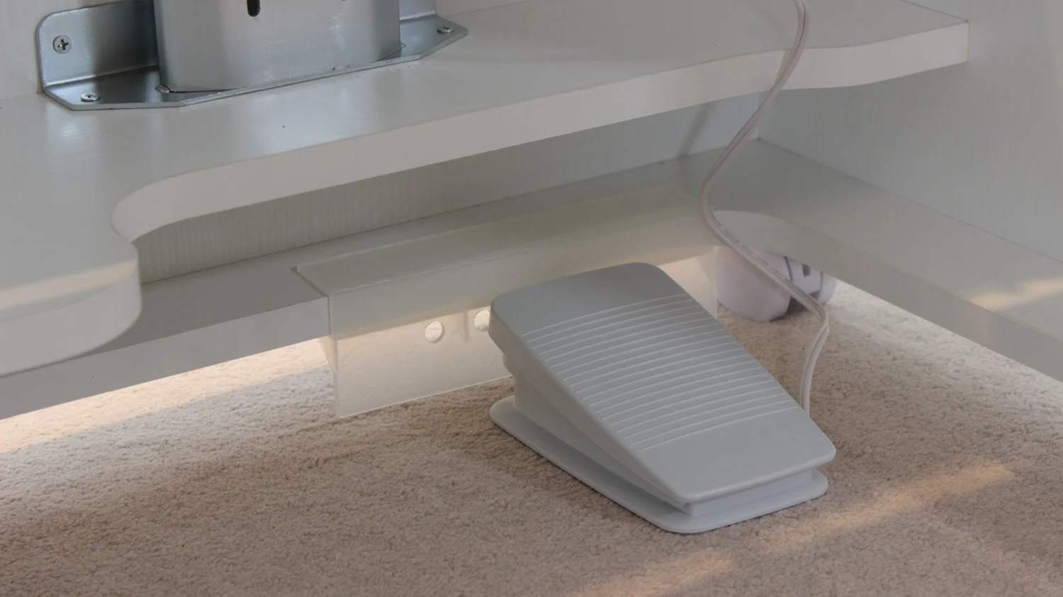 3 step push down release air-lift mechanism means a quick push down moves your machine from storage to flatbed to free-arm positions.