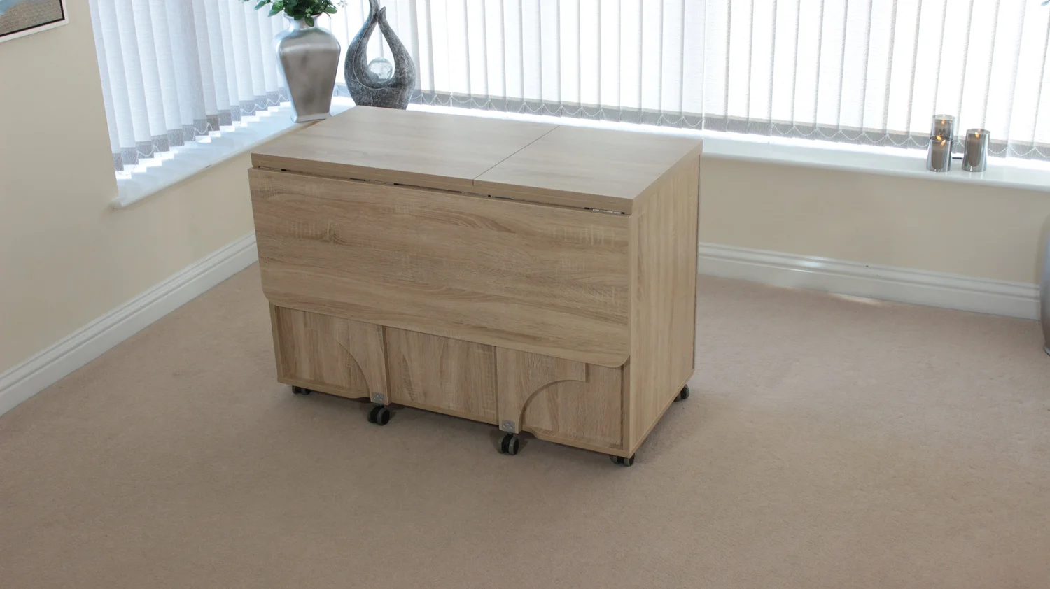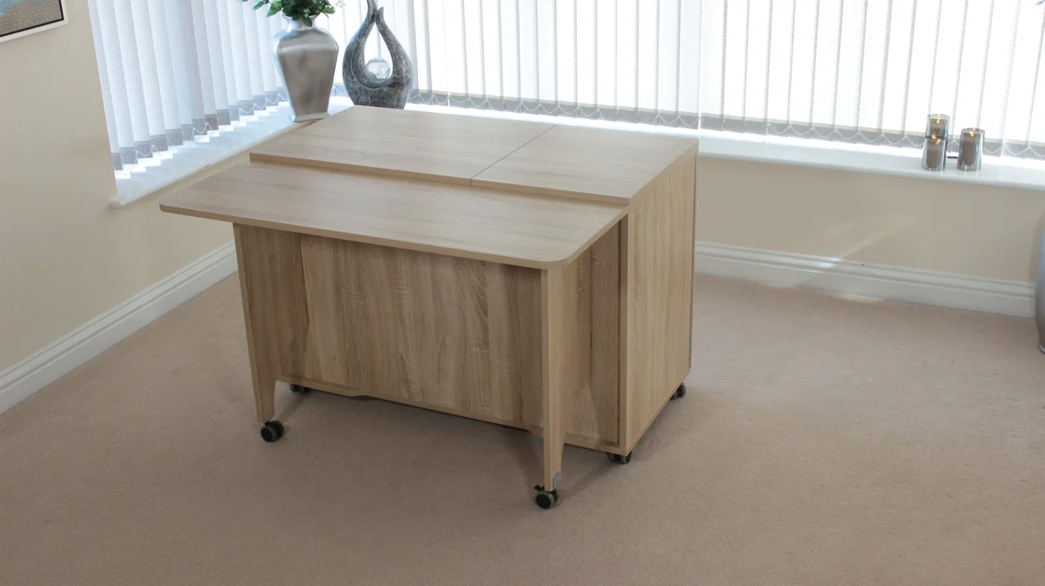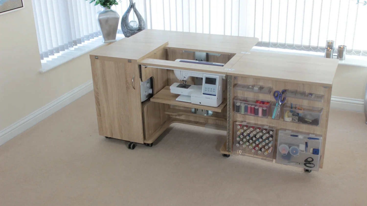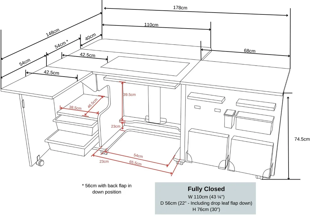 Stores both a sewing machine and an overlocker, or maybe a second smaller portable machine if you prefer.