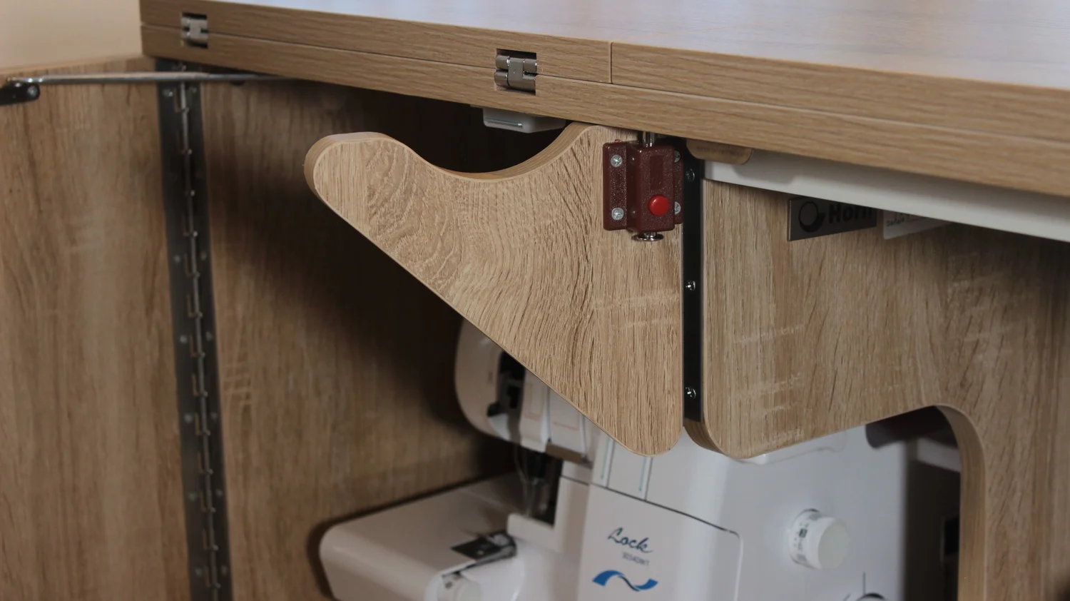 Fitted with our Maxi-lifter opening (type 1942) which is capable of taking virtually all domestic sewing machines on the market old or new!