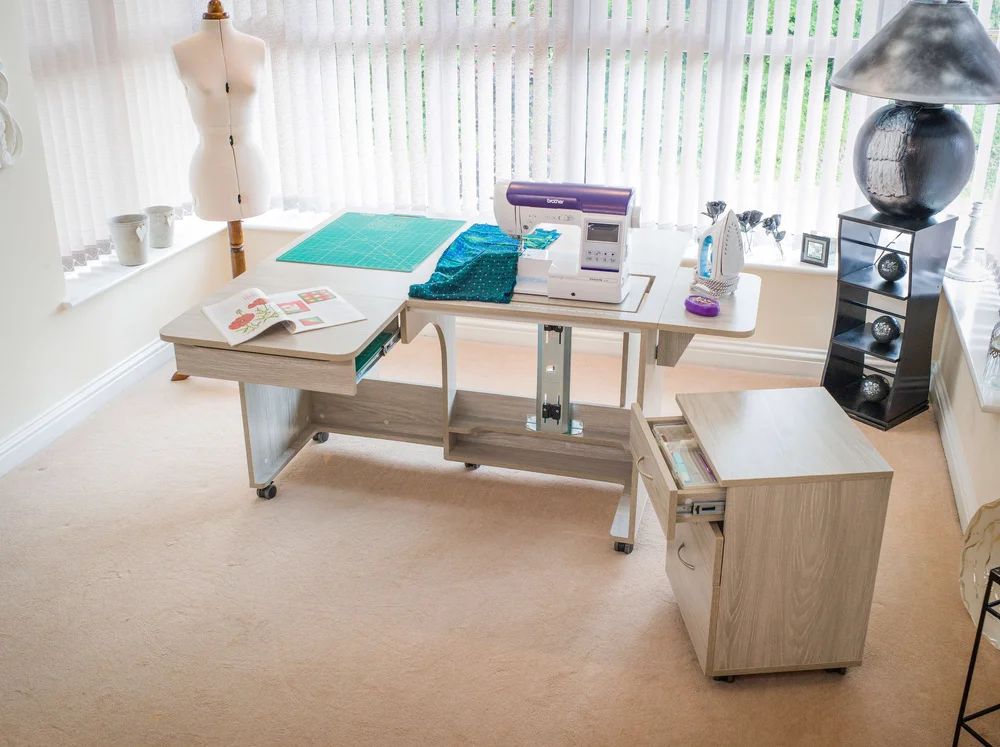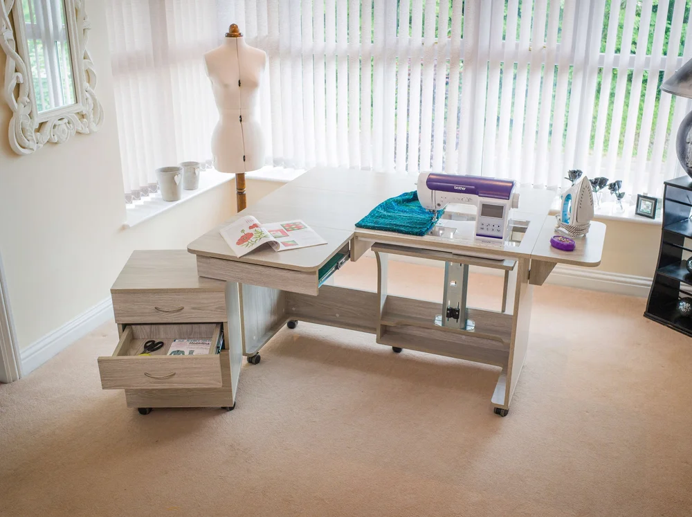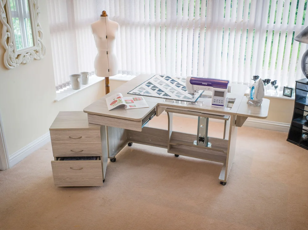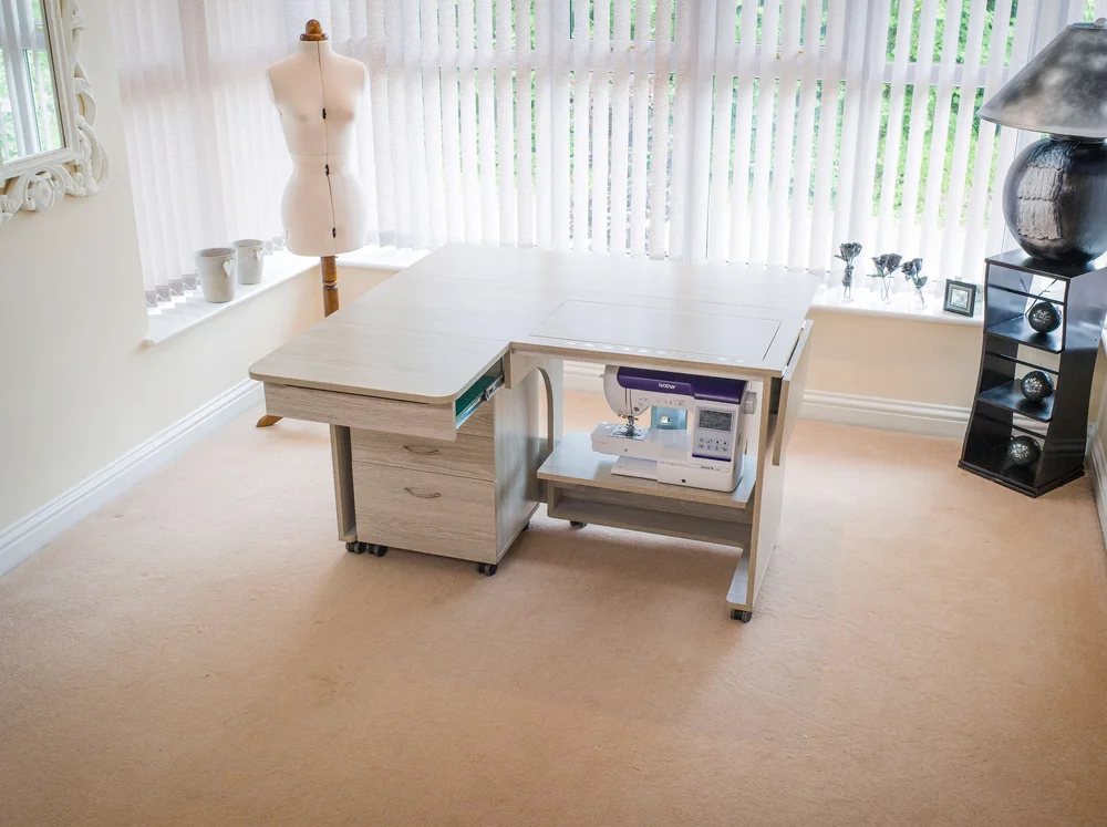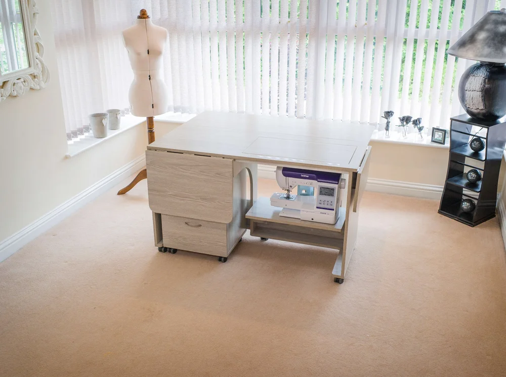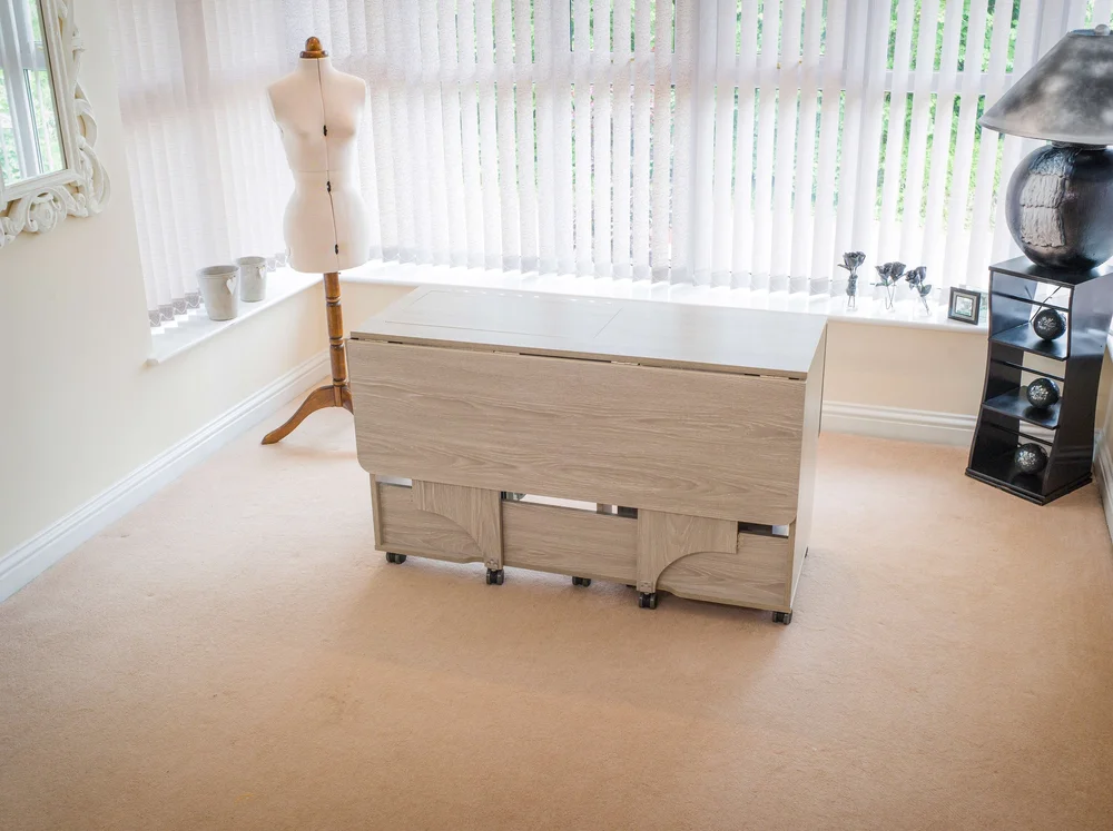 The smaller sister of the Super Q, the Quilter’s Delight is still fitted with the Maxi opening (1942) so is able to accommodate some of the largest domestic sewing machines, but in an overall smaller space. The Quilter’s Delight features 3 collapsible leaves which can be opened in various configurations and give support all around the user for even the largest projects. The unit sits on heavy-duty castors for easy mobility and increased stability, is a great unit for those with a smaller area to fill, and is easier on the pocket.