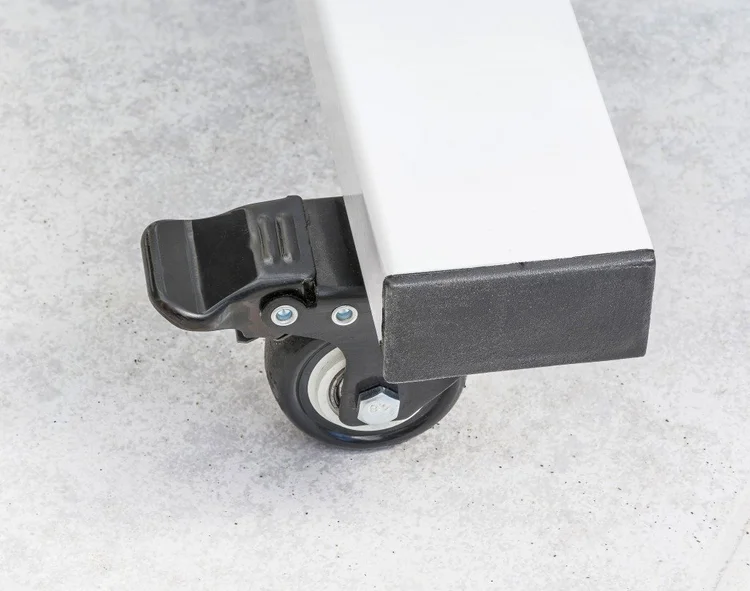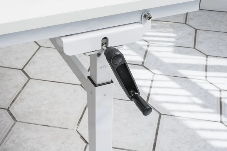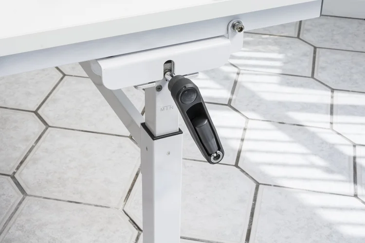 A large height adjustment range to suit virtually any user. Can be lowered to sit at, or raised to stand and work at.