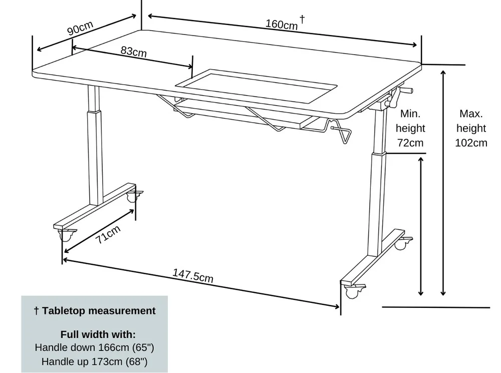 Need a large work surface, and the option to stand or sit while using your machine? We have the perfect answer! Horn’s Sewer’s Vision height adjustable table is a 2-in-1 sewing and cutting workstation which gives you a spacious and smooth surface, allowing you to spread out and work with your largest projects without any fuss, and can be lowered or raised to your ideal working height.
