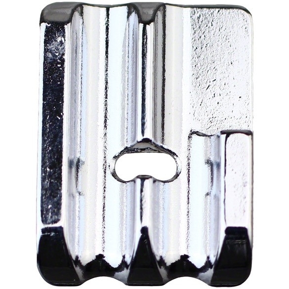 The piping foot (sometimes mistakenly referred to as the cording foot) is designed with two grooves on the underside and will hold and cover the cord when making piping tape.