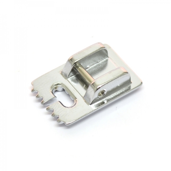 It has multiple grooves on the underside through which the pintucks can ride as you sew the adjacent rows. This pintuck foot has 5 grooves suitable for standard and corded pintucks