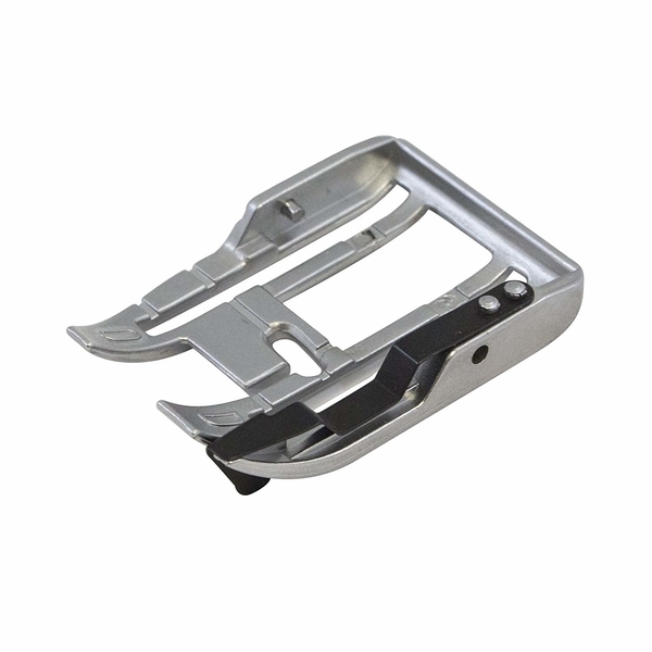 It has a built-in flange to keep your seams right at 1/4″ all the way around. Clips onto dual Acufeed foot holder which comes with your machine.