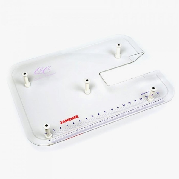 Janome large extension table fits snuggly against the machine giving a much larger work surface and extra support for your sewing projects.
