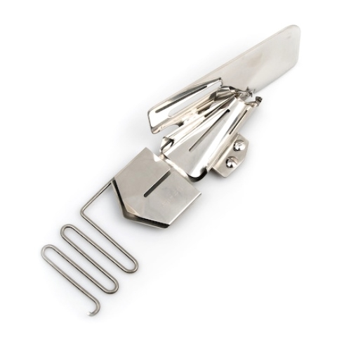 Use the Tape Binder to insert bias tape for accenting projects. The bias is folded and held in place by the guide. Butt the fabric against the edge of the bias tape from the left side to attach. You can also use this foot to cover fabric on piping. Janome Wide Attachment for Bias Tape Binding. Wide (42mm – 12mm).