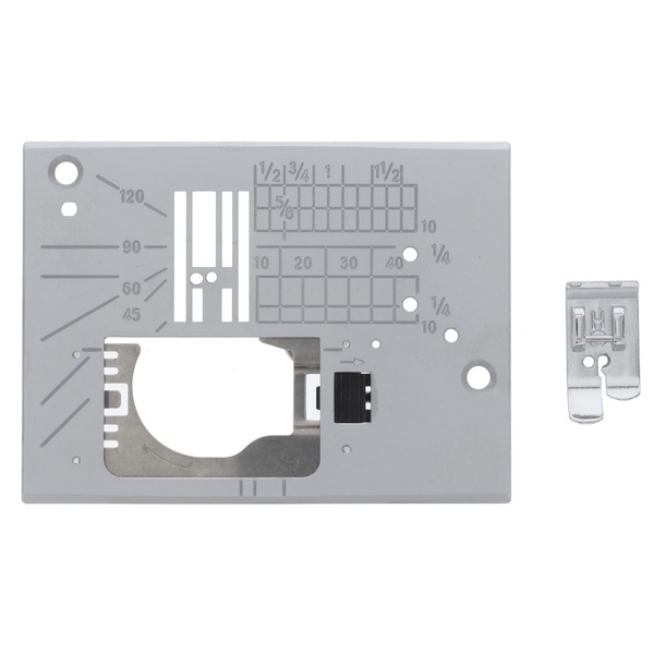 Janome Straight Stitch Foot and Needle Plate Set allows for perfect straight stitching and comes with a needle plate as an addition or as a replacement plate.