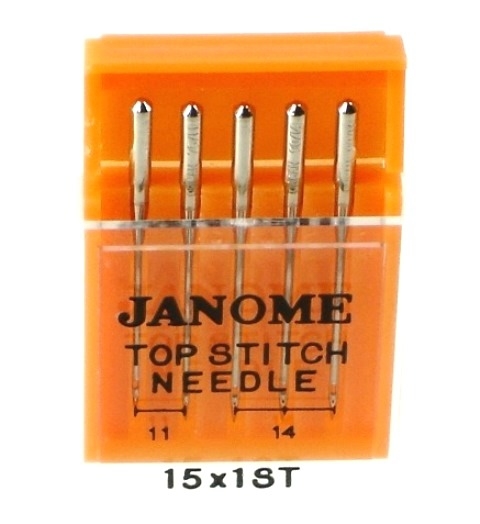 This Janome Top Stitch Needle Assorted has an extra large eye and a large groove to accommodate heavy top stitching thread. The points on the Janome Top Stitch Needle Assorted Size Pack are extra sharp for straight, accurate stitching.