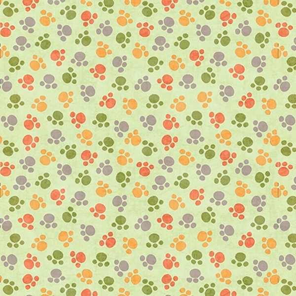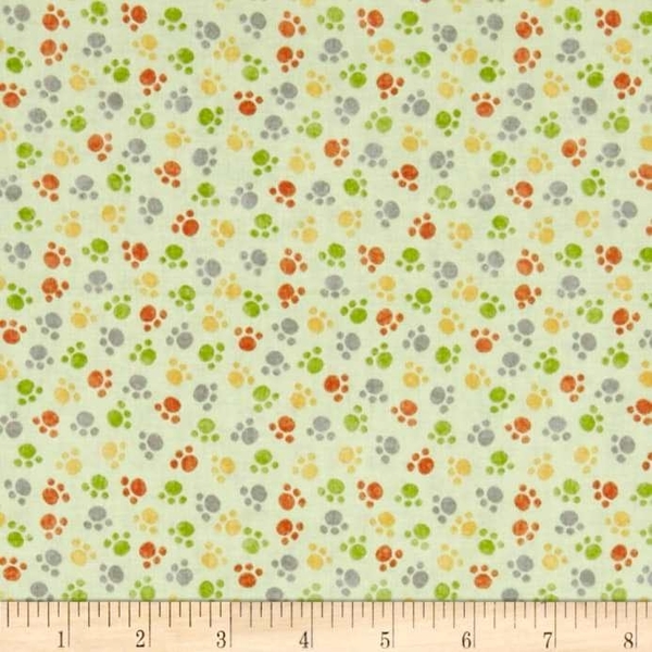 Quilting Treasures Jungle Buddies Multi Paw Prints on Green Fabric.