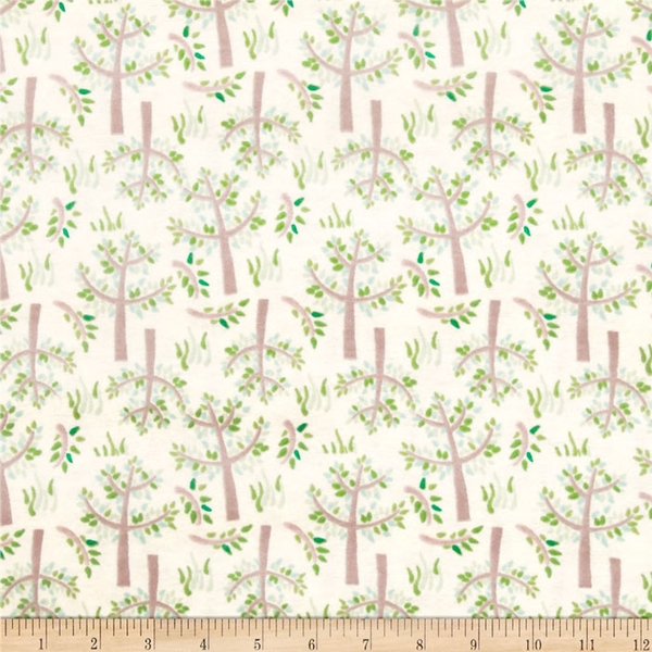 Jungle Giraffe, Trees & Grass on Cream Flannel Fabric.