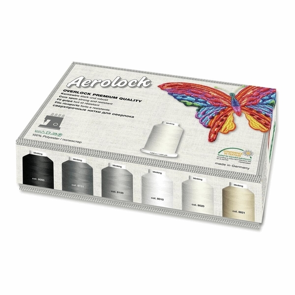 100% polyester core spun fine overlock and sewing thread. In six popular shades. Washable at up to 95 degrees centigrade, can bleach, cool tumble dry, moderate iron, can be drycleaned