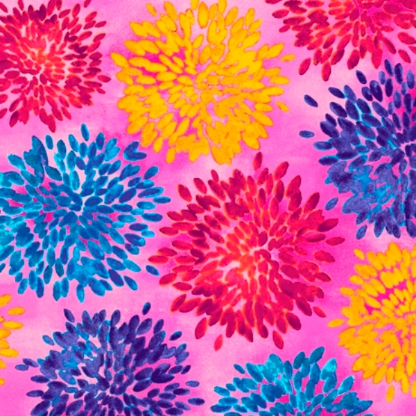 Quilting Treasures Mirage Multi Floral on Pink Fabric.