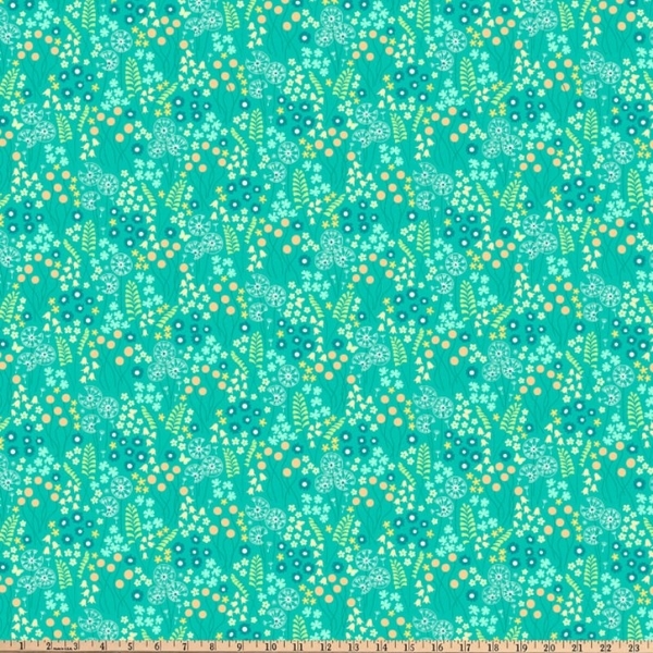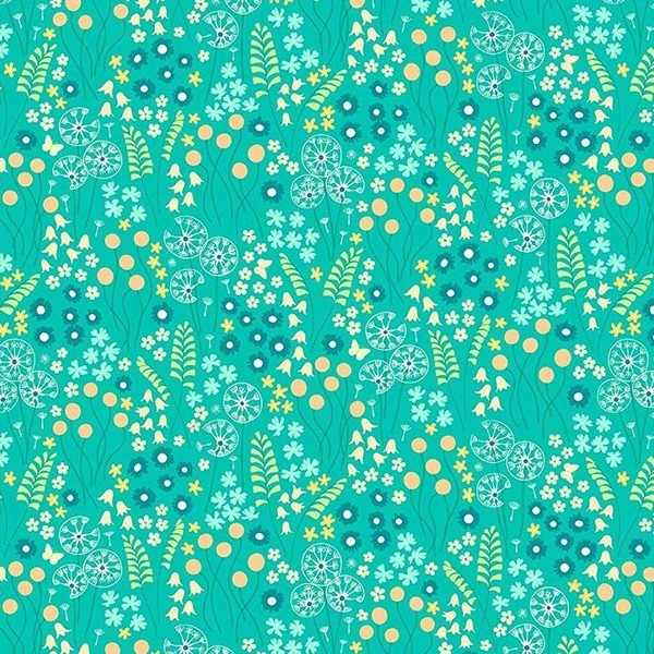 Figo Fabrics Mountain Meadow Multi Meadow Drift on Turquoise Fabric.