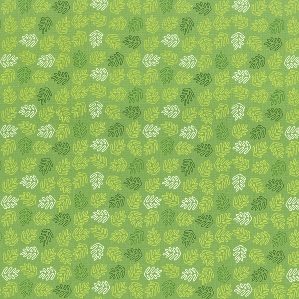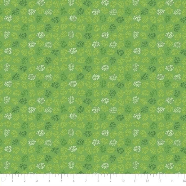 Camelot Fabrics Roarsome Leaves on Green Fabric.