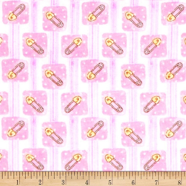 Sew baby quilts and blankets with this Sweet Safety Pins 100% cotton flannel fabric.